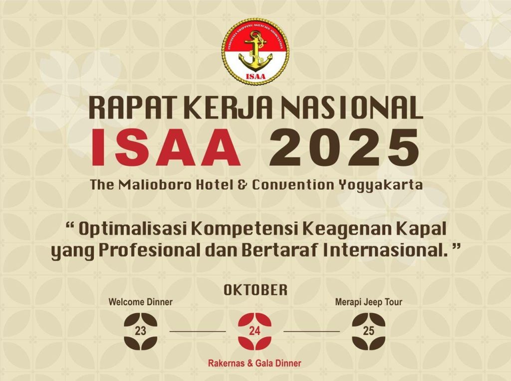 Yogyakarta – Indonesia Shipping Agencies Association (ISAA) menyelenggarakan Rapat Kerja Nasional (Rakernas) 2025 di The Malioboro Hotel & Convention Yogyakarta, pada 23–25 Oktober 2025.